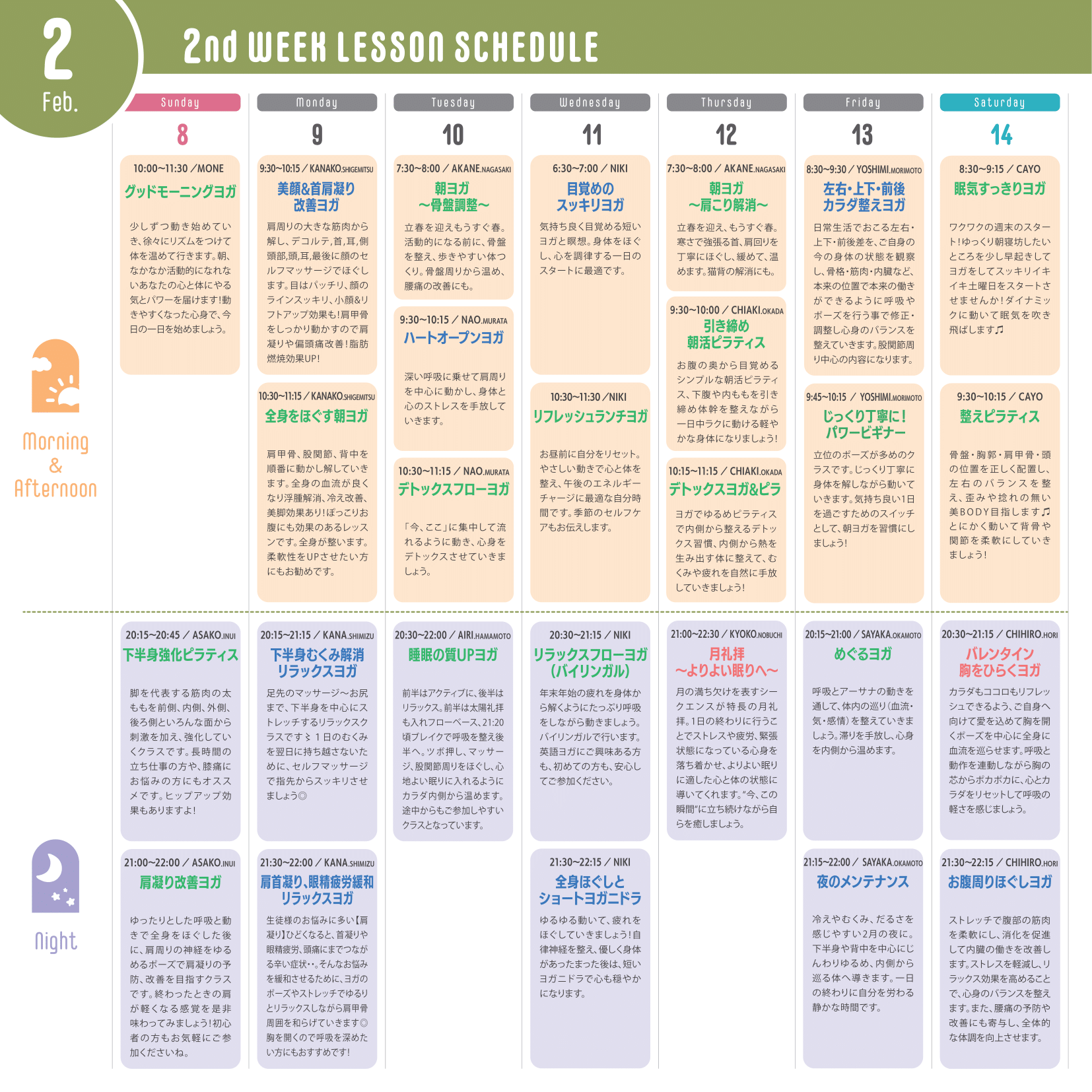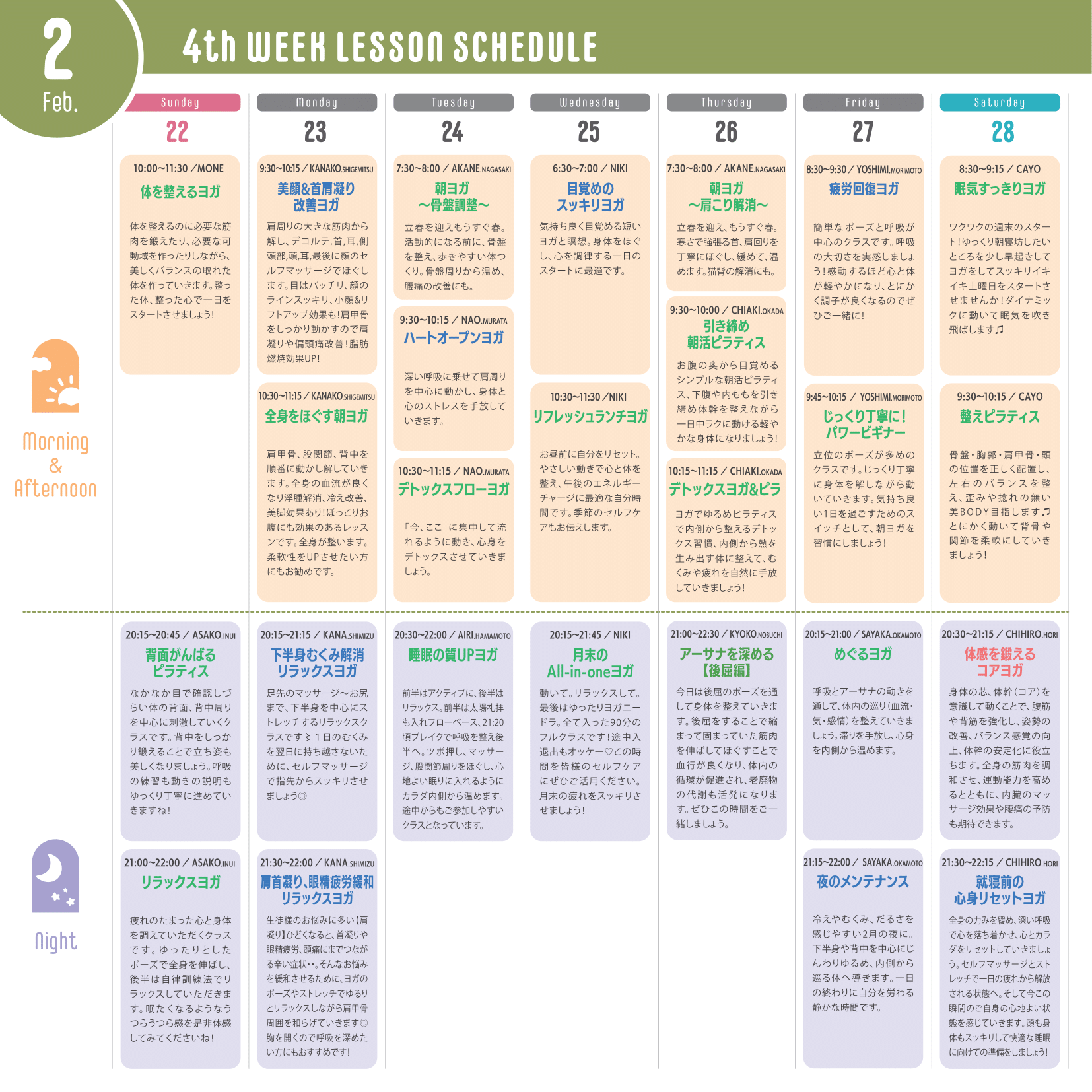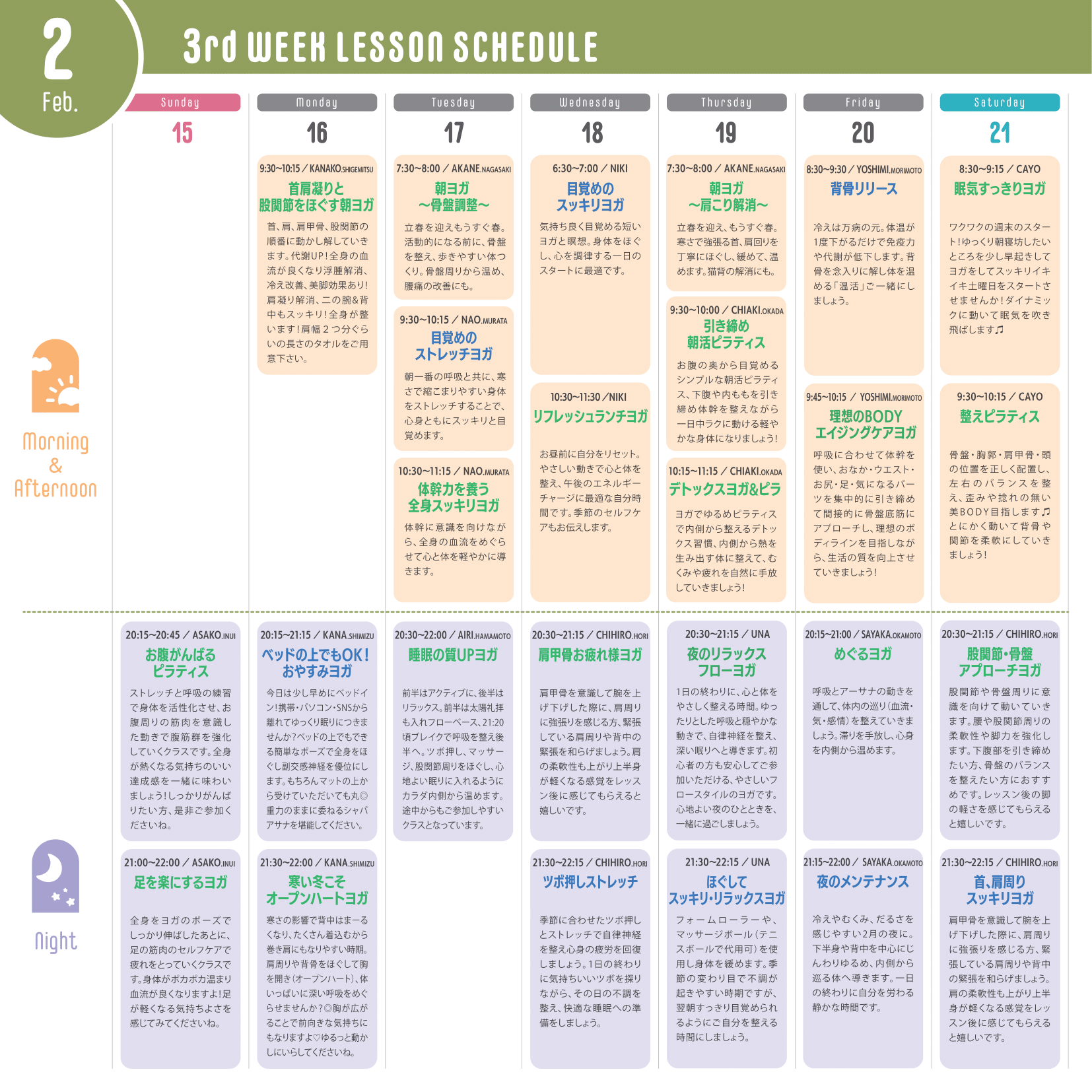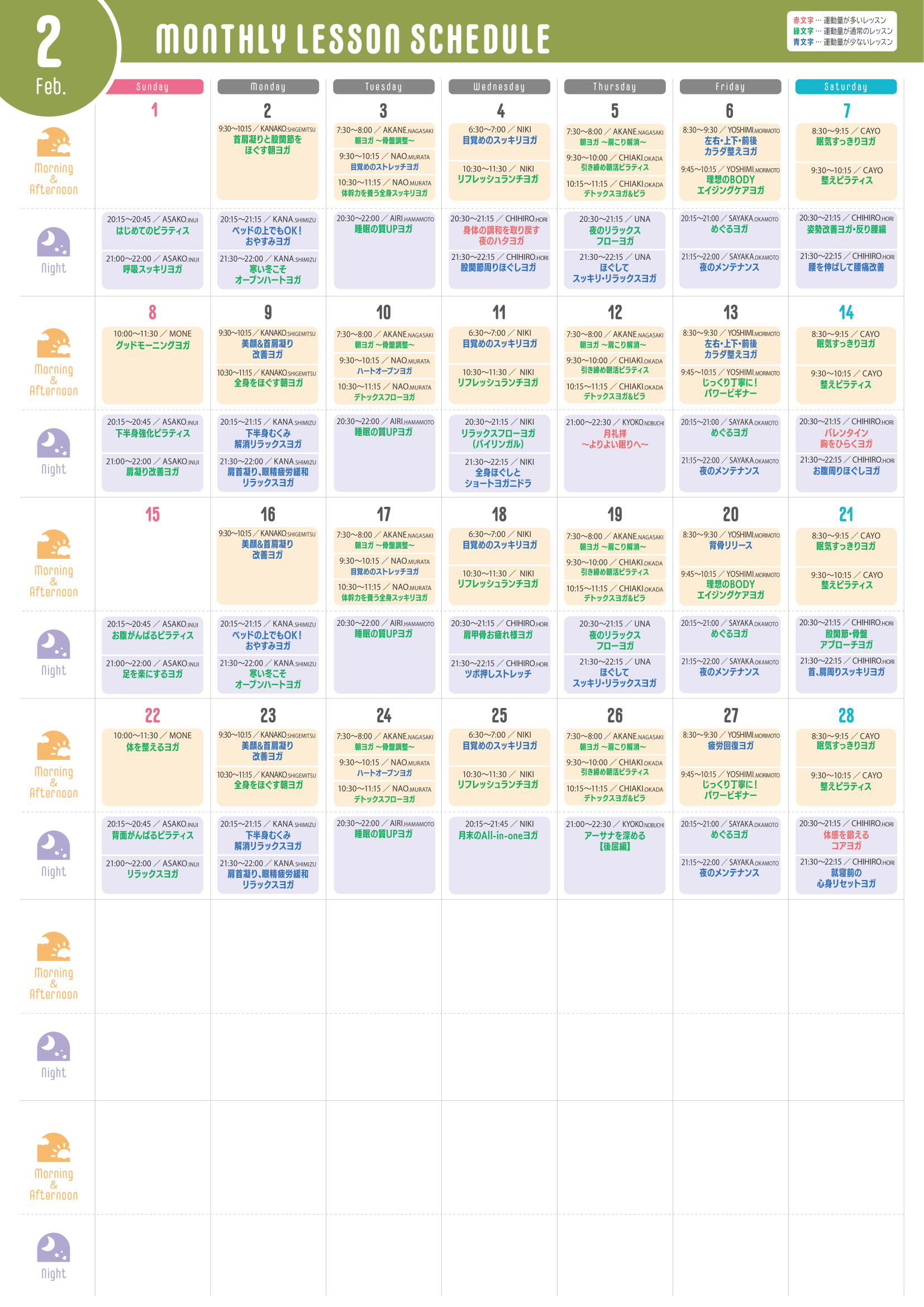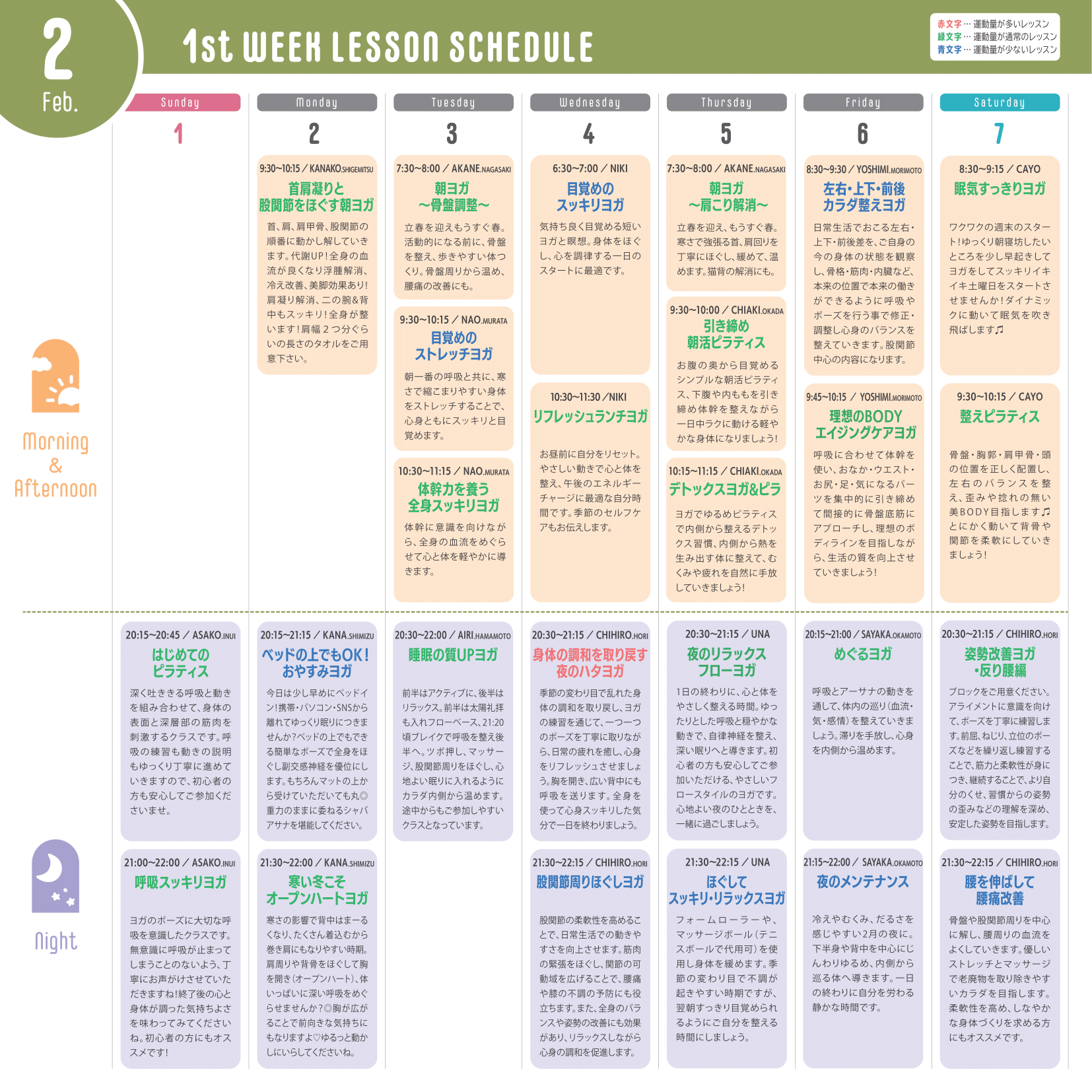 ※運動量が多いレッスン…赤文字