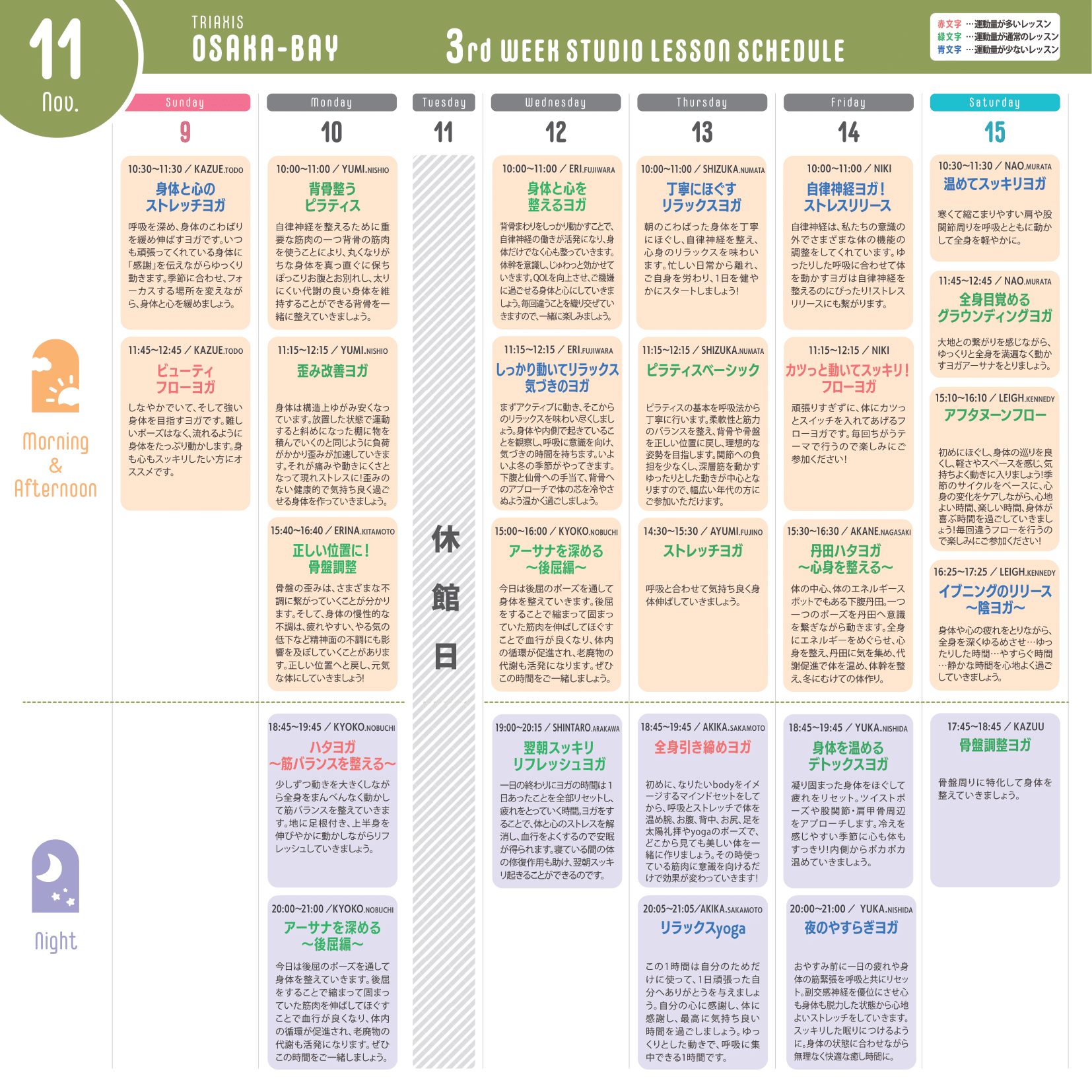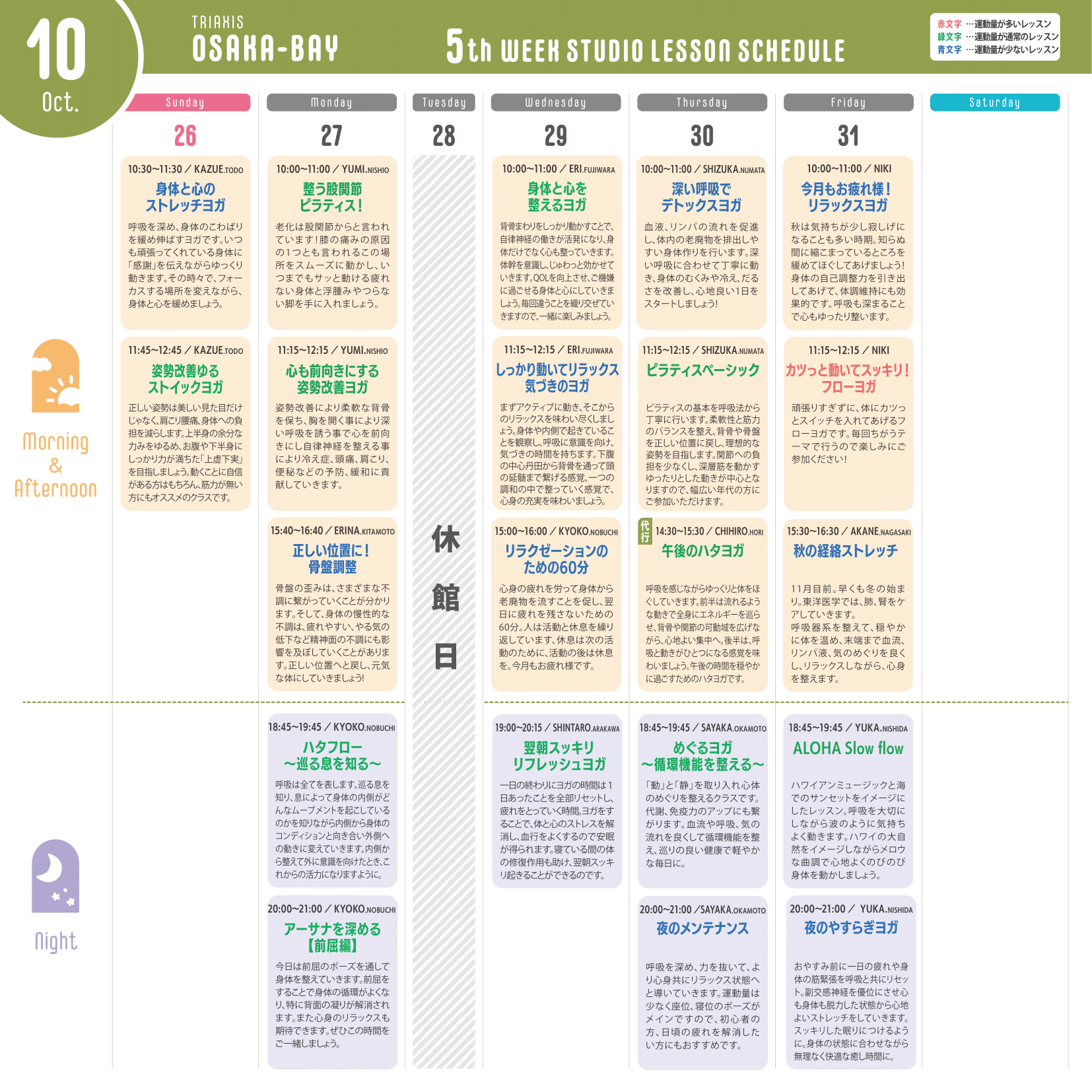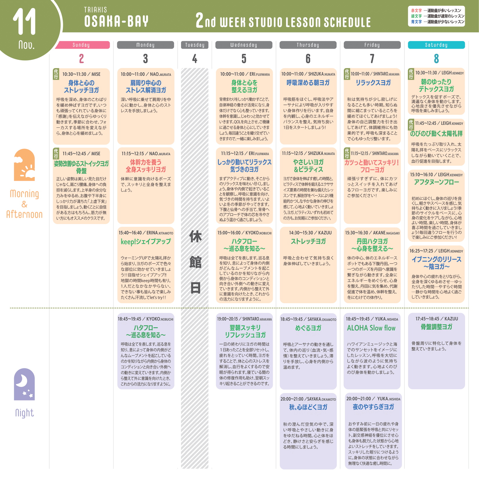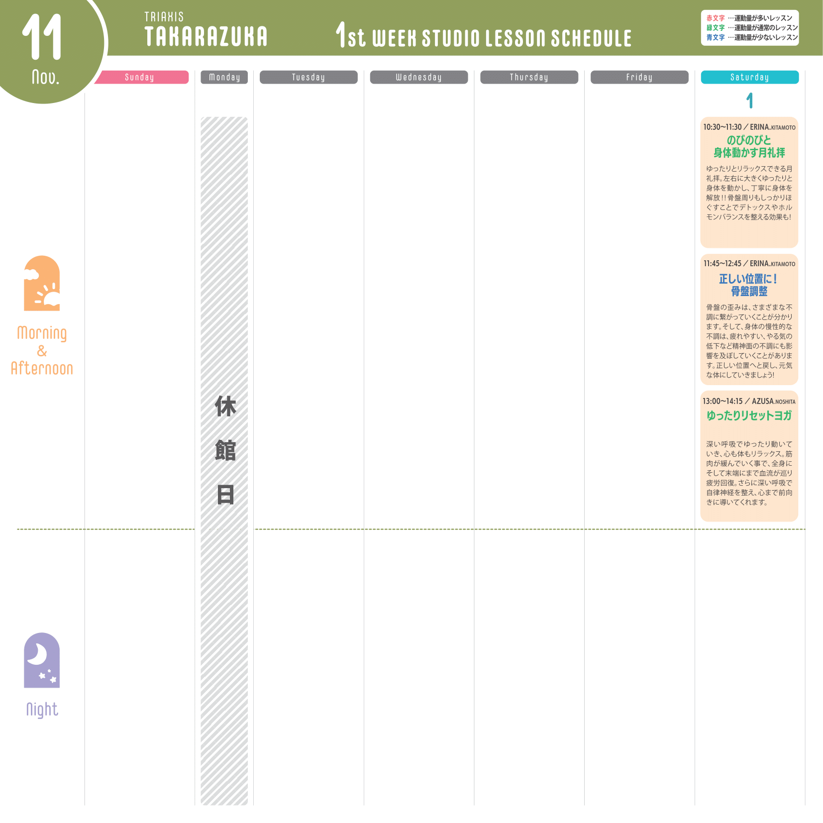 ※運動量が多いレッスン…赤文字