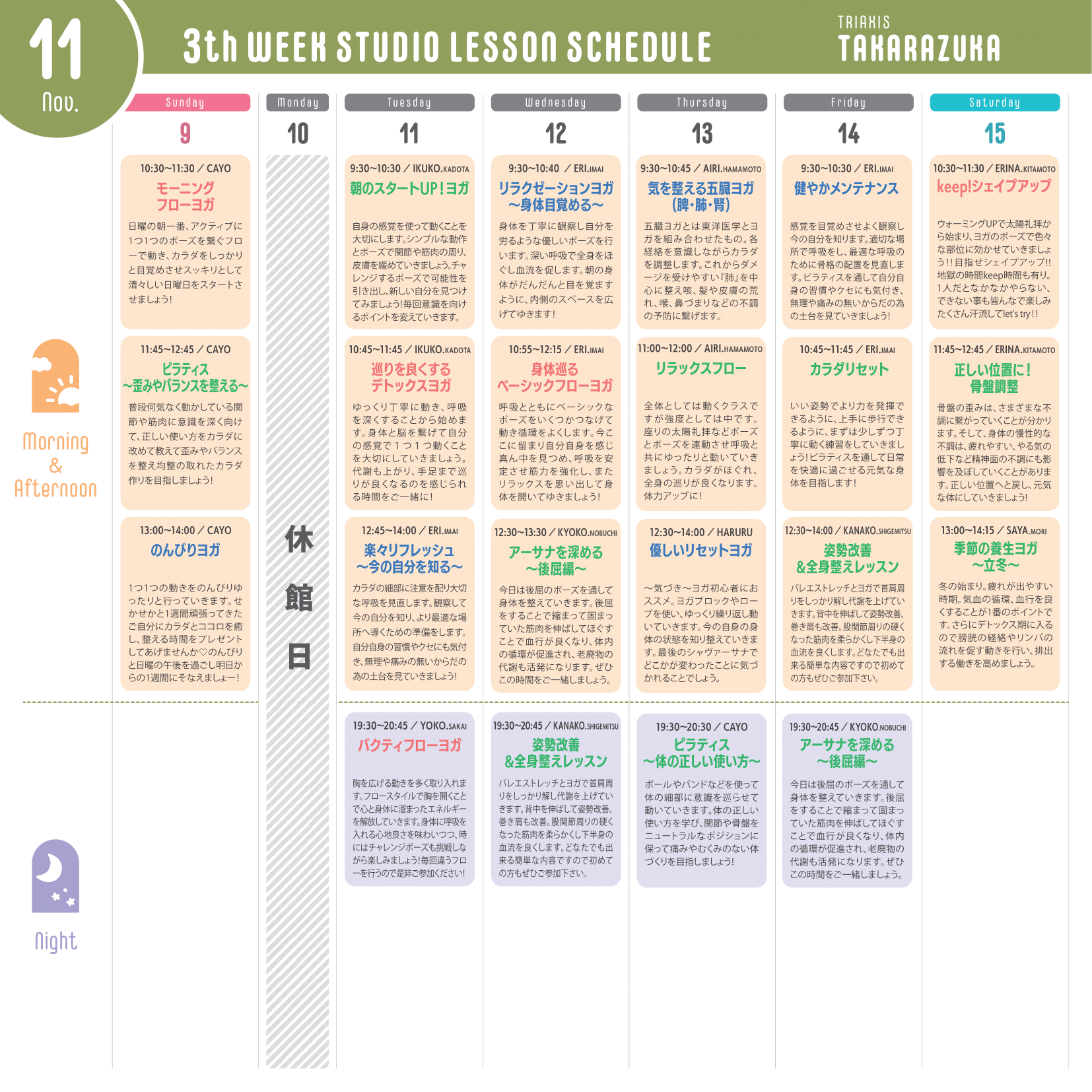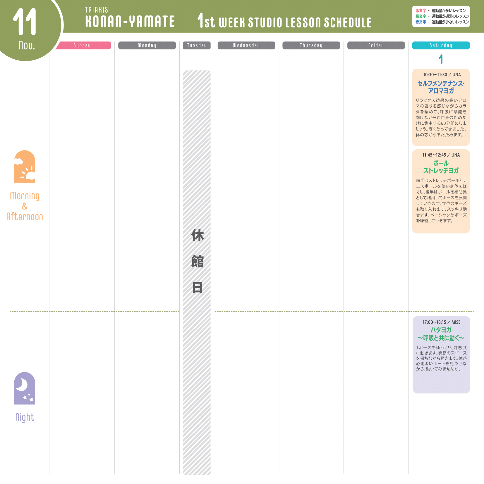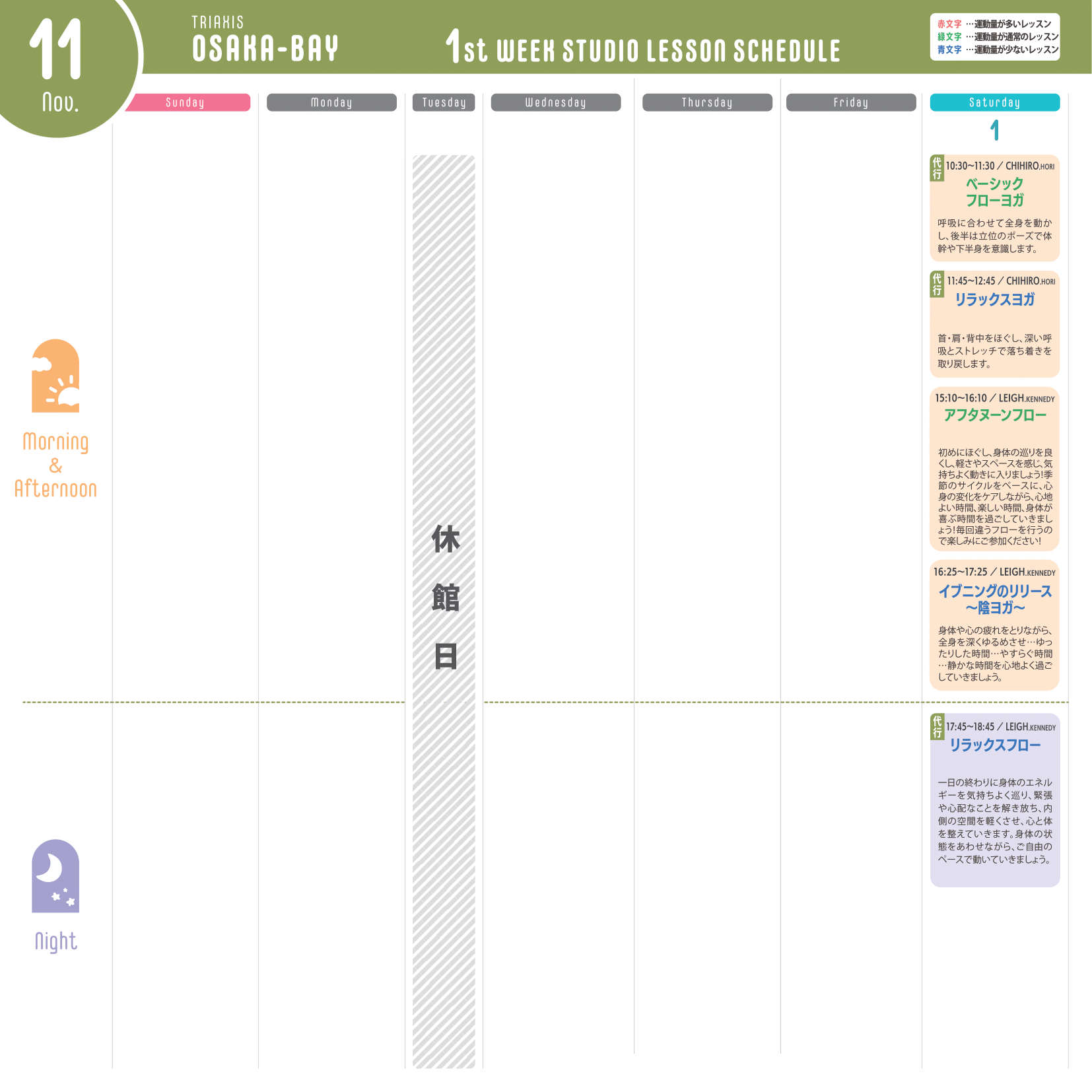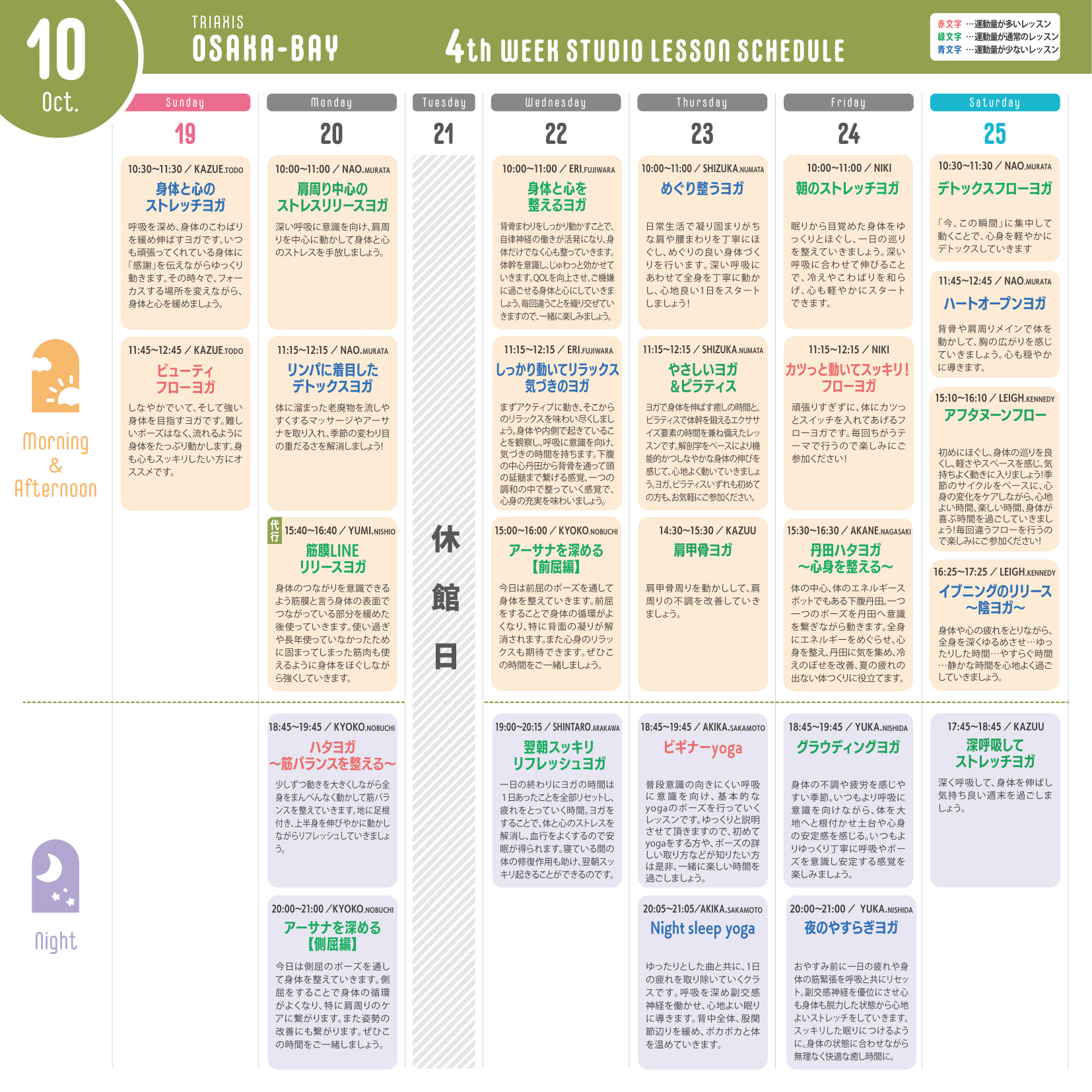 ※運動量が多いレッスン…赤文字