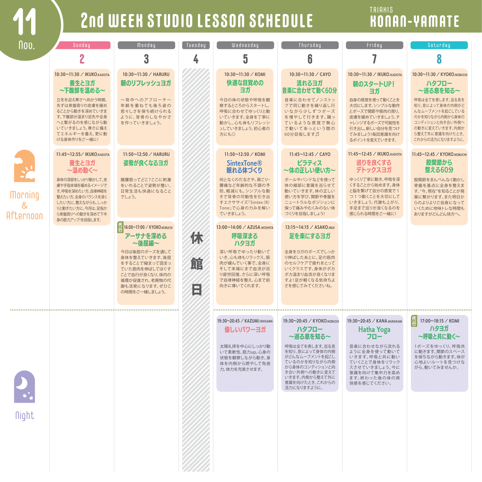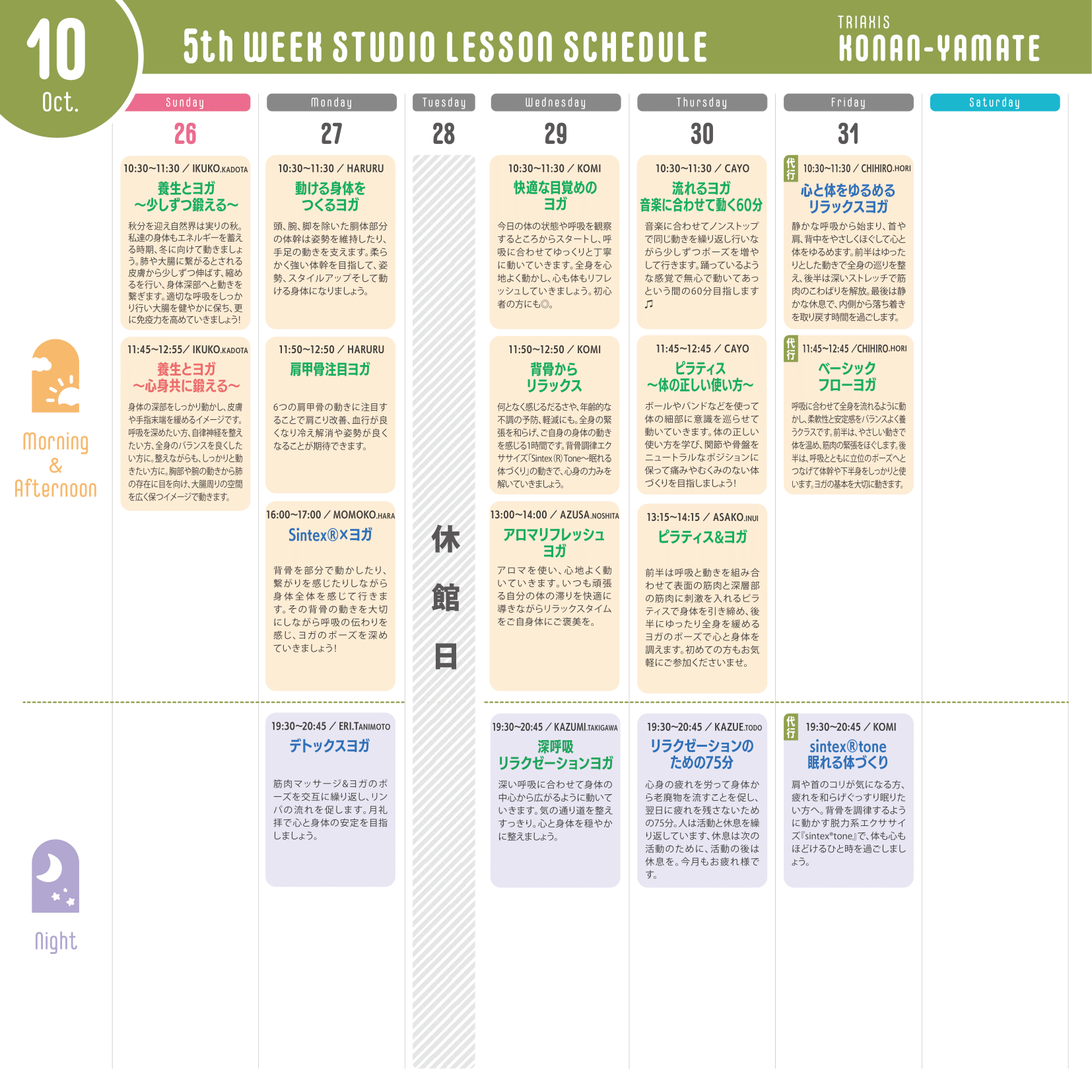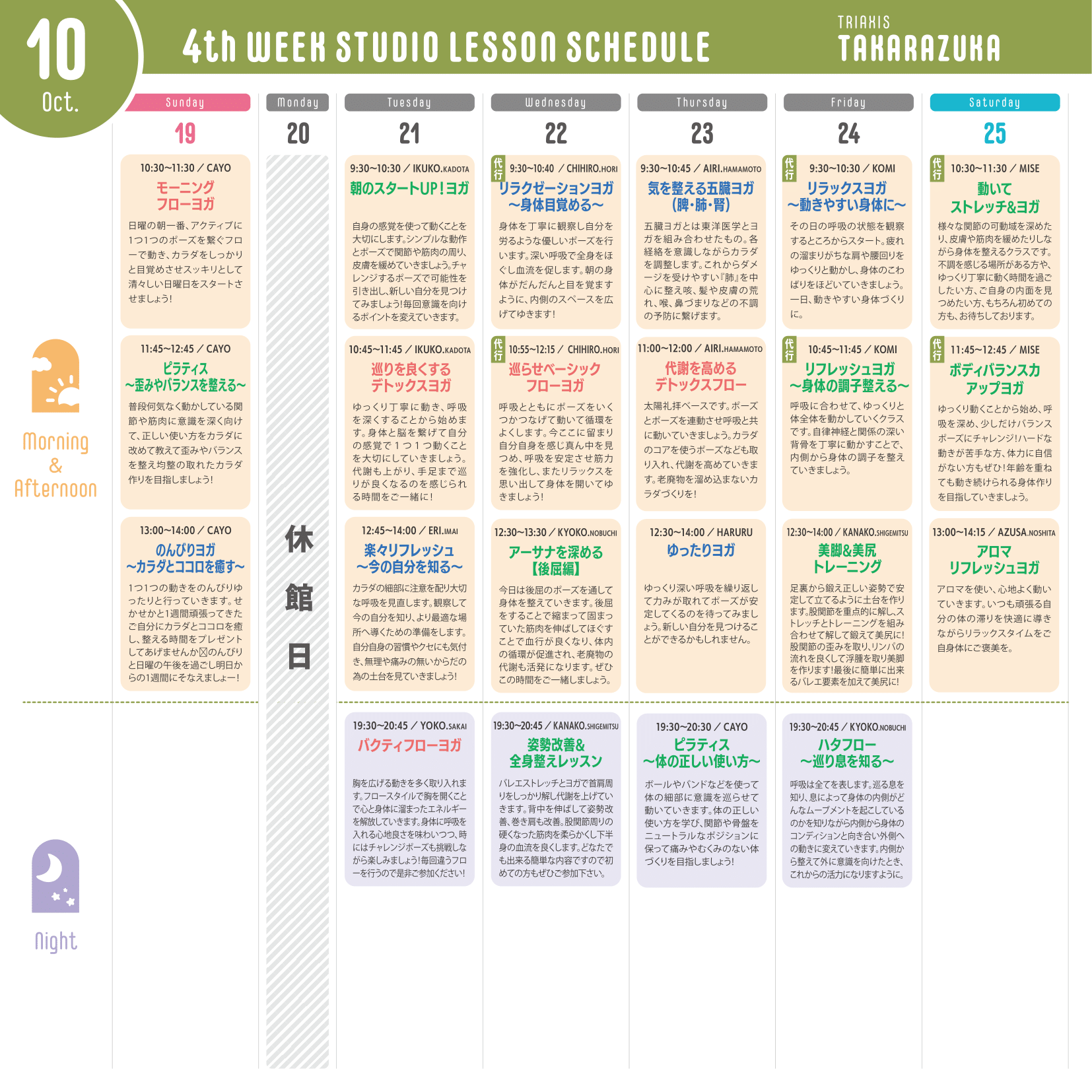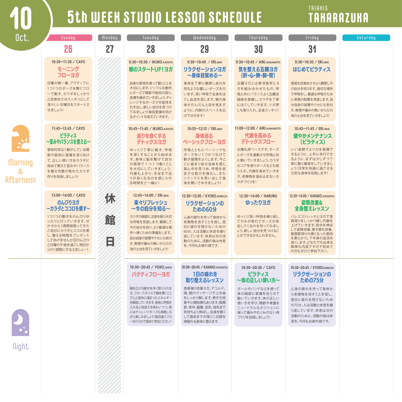 ※運動量が多いレッスン…赤文字